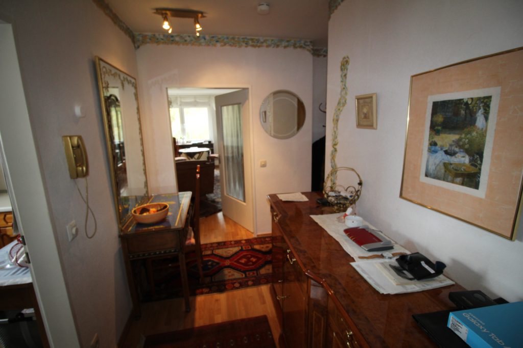 Das Bad ist gefliest, ebenso der Boden in der Küche und der Balkon (neu saniert). Die Weitere Wohnung ist mit Laminatboden ausgelegt. Der Balkon ist der Straße abgewant auf der Ostseite mit Blick ins Grüne.